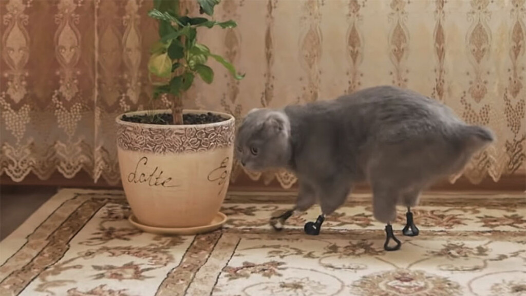 Бионическая русская кошка стала второй в мире, получившей 4 протеза конечностей.