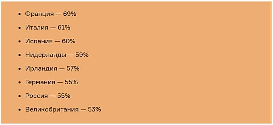 *По материалам PR-учреждения Edelman (Компания Edelman заработала в США ещё в 1952 году и теперь считается крупнейшим частным PR-агентством в мире. В нём работают около 5 тысяч человек. Офис компании в России был закрыт в 2015 году, передав всех местных клиентов своему новому партнёру — компании PRT (источник))