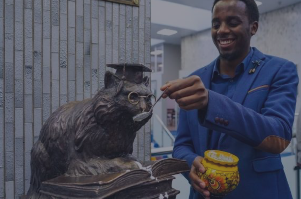 25 января, в День студента в РУДН принято умасливать Кота Ученого, который «живет» в библиотеке главного корпуса. Это бронзовая скульптура, которая стала символом удачной сессии. Студенты угощают кота сметаной и конфетами, чешут за ушком и трут носик. Так они благодарят за хорошие оценки на экзамене. В этот день устраивают конкурсы, творческие выступления, квесты. Вечером в Интерклубе обычно проводят танцы с душевными посиделками.