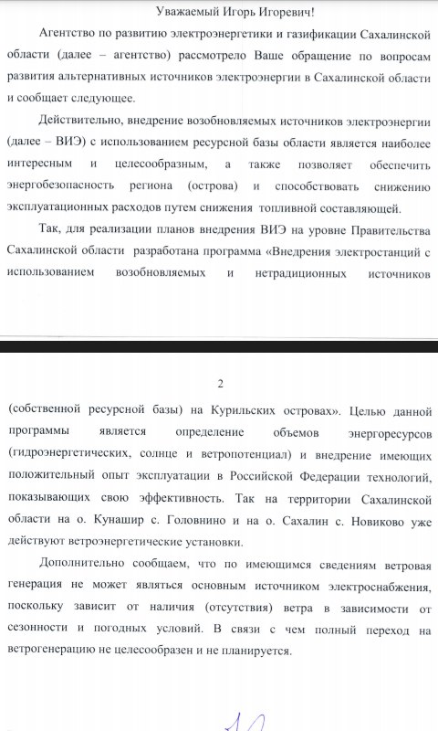 Альтернативная энергетика и коментарий сахалинского правительства