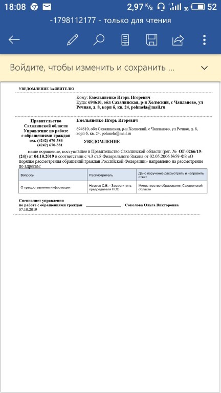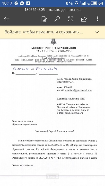 ни чего необычного, просто на мой простой вопрос 《какую модель проектора для школы вы купили за 1 394 399.9 рублей》 вопрос из приемной правительства Сахалинской области направили в министерство образования, из министерства образования меру Надсадину Ждем перенаправления от мера Надсадина кому нибудь еще?🤔