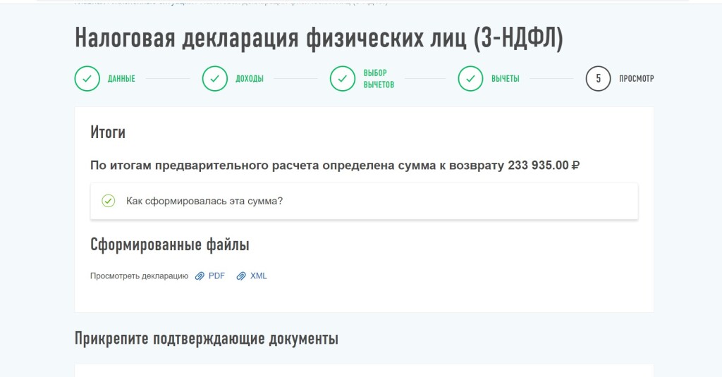 Следующий раздел – "Итоги" и прикрепление подтверждающих документов.