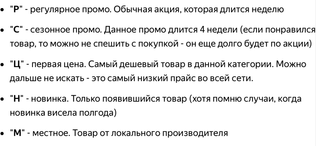 Что означают эти: "С", "Р", "Н" или знак звездочки прямо рядом с ценой? Это совсем недавнее новшество, предназначенное для удобства сотрудников магазинов Пятерочка, но оно может быть полезным и для покупателей (если знать, как всё это расшифровать).