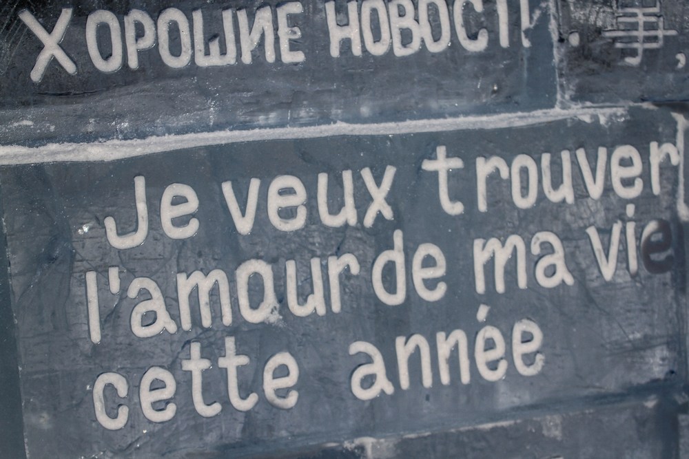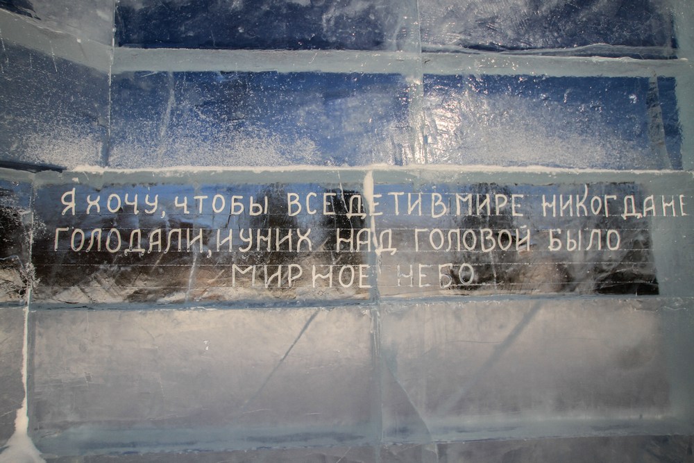 На "стенах" библиотеки были вырезаны на трех языках пожелания со всего света. По словам