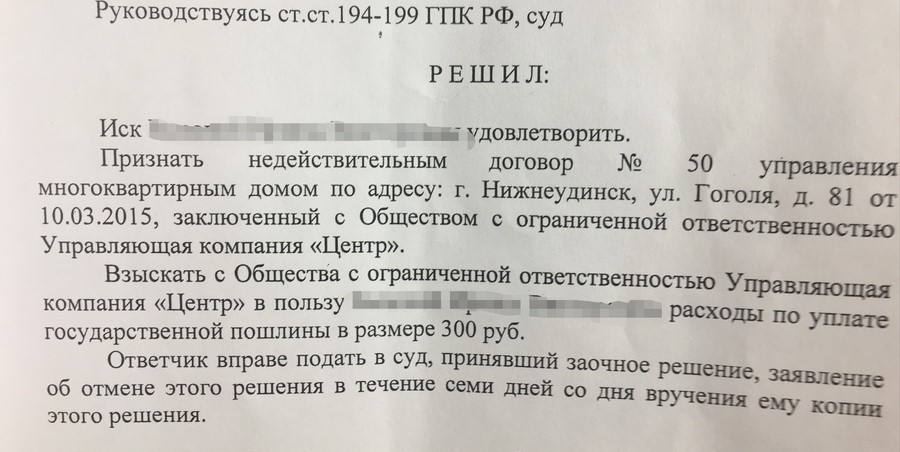 Само собой, что появление судебного решения, подтверждающего сомнительный путь получения права на управление домом, УК не афишировалось. Однако неравнодушные жильцы дома на этом не остановились, и через суд признали договор управления домом незаконным (дело № 2-4244/2019, рассмотренное Нижнеудинским городским судом)