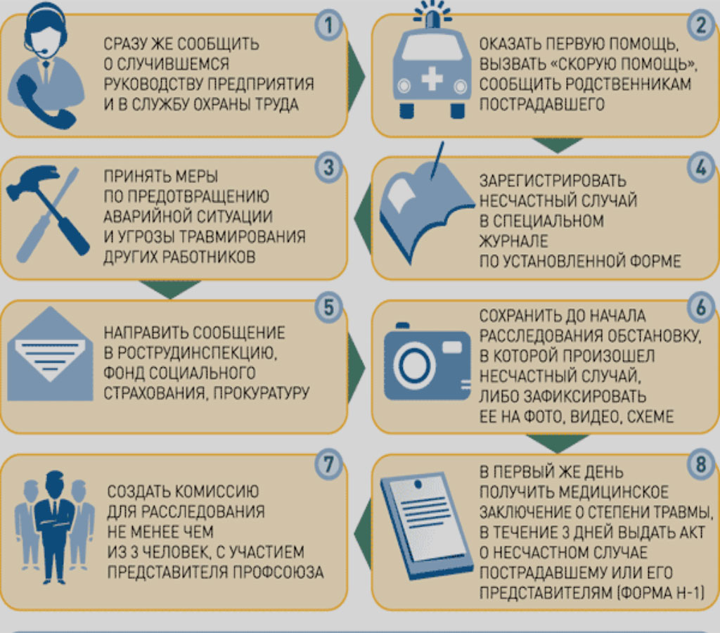 Для расследования несчастного случая (в том числе группового), в результате которого один или несколько пострадавших получили тяжелые повреждения здоровья, либо несчастного случая (в том числе группового) со смертельным исходом, в состав комиссии дополнительно включаются государственный инспектор труда, представители органа исполнительной власти субъекта Российской Федерации или органа местного самоуправления (по согласованию), представитель территориального объединения организаций профессиональных союзов. Расследование несчастного случая (в том числе группового), в результате которого один или несколько пострадавших получили тяжелые повреждения здоровья, либо несчастного случая (в том числе группового) со смертельным исходом проводится комиссией в течение 15 дней.