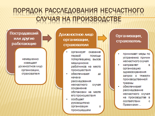 Порядок расследования и учета несчастных случаев на производстве определяется ст. 227-231 ТК РФ и Положением об особенностях расследования несчастных случаев на производстве в отдельных отраслях и организациях, утвержденным постановлением Минтруда России от 24 октября 2002 г. № 73.