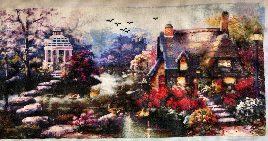 Иногда так увлекаюсь, что могу полночи просидеть за вышивкой. Занимаюсь рукоделием более 10 лет и в моей галерее более 30 картин, как вышитых крестиком, так и выложенных кристаллами. И в самые тяжелые и трудные моменты жизни не раз такой переход от умственного труда к физическому спасал и давал возможность пережить и выйти с победой.
