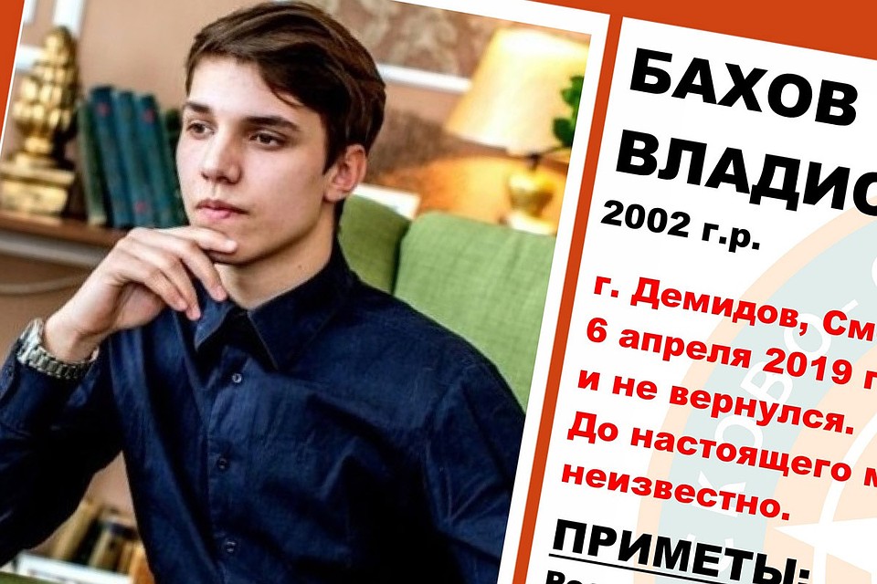 О безвестном исчезновении 6 апреля 2019 года несовершеннолетнего Влада Бахова, 2002 года рождения, в лесном массиве рядом с г.Демидов Смоленской области, не раз рассказывал Андрей Малахов в передаче "Прямой эфир". Именно в этот день Влад Бахов отмечал с друзьями день рождения друга в лесу Демидовского района. Это было недалеко от города. Вся компания пила алкоголь. Компания состояла из местной золотой молодежи — детей бизнесменов, депутатов, полицейского. Парень пропал.