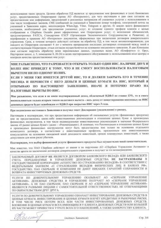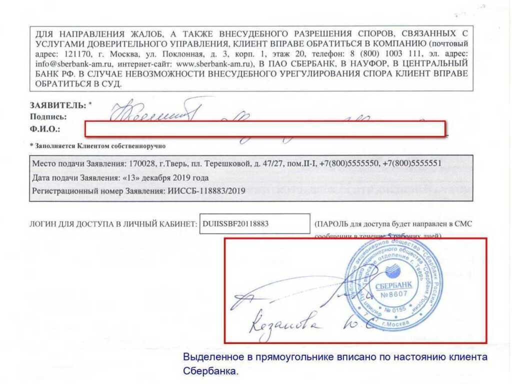 3. В заявлении нет реквизитов АО «Сбербанк Управления Активами», нет подписей с его стороны.