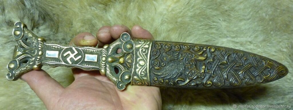 В руках у жреца появился короткий меч-акинак и золотая чаша.