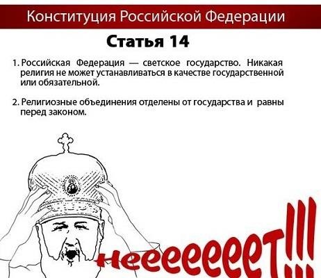 Если так дальше пойдёт, то скоро мы с этой статьёй распрощаемся. Сначала влепили какого-то бога в текст гимна, потом лженаука теология по просьбе патриарха вошла в перечень научных дисциплин, теперь вот летающего макаронного монстра хотят упоминать в Конституции, дальше за богохульство захотят сжигать на костре.