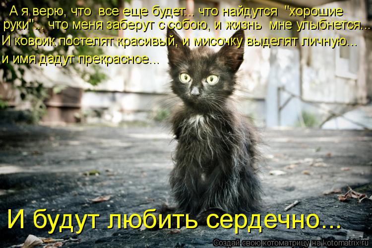 Спасибо ВАМ! всегда Вас читаю, все так жизненно. У самой 4 кошки, была бы возможность всех бы с улицы подобрала. Растрогали до слез... Бедные животные они ни в чем не виноваты... А мы за них в ответе.