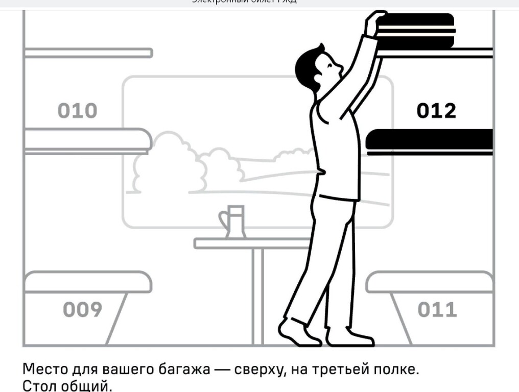 В новых электронных билетах, размещено обращение к пассажирам нижних полок, с просьбой разрешить едущим на верхних местах посидеть внизу в дневное время.
