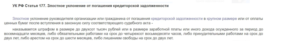 Во-вторых, нужно злостно уклоняться от уплаты. То есть, у вас должны быть деньги (это тоже нужно доказать), при этом вы всячески должны скрываться от должника, имеющего на руках исполнительный лист (то есть до этого, он должен выиграть суд, который обяжет вас вернуть долг).