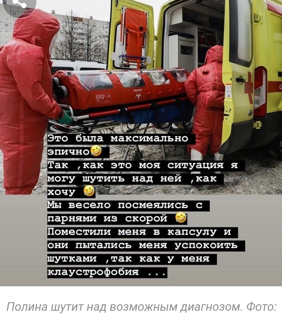 Скорую мне в итоге вызвали в поликлинику. Приехала машина, и начался ужас. Мне сказали ложиться в специальную капсулу! Она представляет собой этакие закрытые носилки с пластиковым капюшоном. В ней есть отверстия с перчатками, чтобы осматривать через них человека и насос, который качает воздух, чтобы внутри капсулы можно было дышать. Для меня это просто жуть! У меня клаустрофобия! Я помню, как пыталась туда лечь, фельдшеры меня подбадривали, а я просила: «Подождите, подождите! Я еще не готова… Не закрывайте меня, мне нечем дышать!» Кстати, эта капсула еле-еле прошла в двери больницы. Не готовы они к ним.