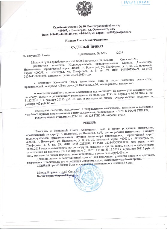 И чем она обосновала, что долга нет? Непонятно. Плата за вывоз мусора-АФЁРА ГОСУДАРСТВА РАДИ ДОПОЛНИТЕЛЬНОГО ДОХОДА В ЛИЧНЫЕ КАРМАНЫ НУВОРИШЕЙ! Тут тебе и "Чиполлино" и "Незнайка на луне"!