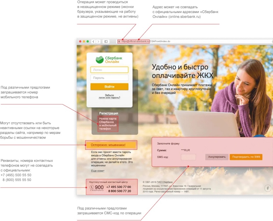 На самом деле, отличить сайт-двойник от оригинала очень просто. Если вы перешли по неизвестной ссылке и попали на главную страницу Сбербанка, обратите внимание на доменное имя. Оно отличается от официального сайта: там могут быть цифры, слова через тире, просто набор букв.