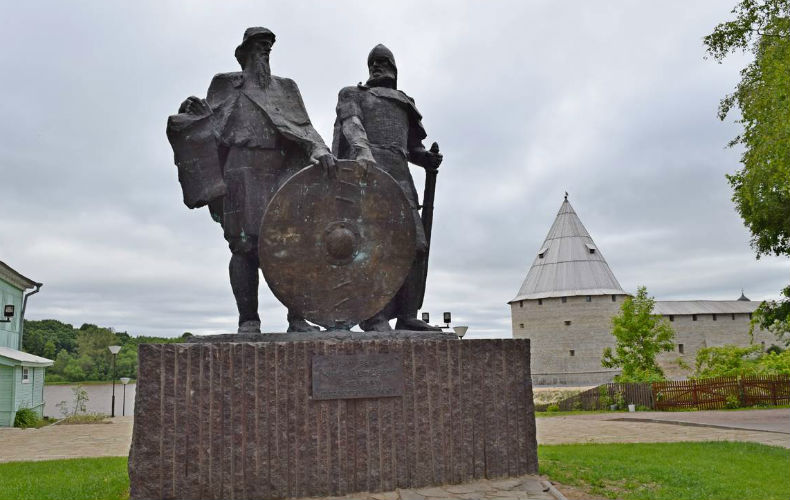 Памятник князьям Рюрику и Вещему Олегу в Старой Ладоге.