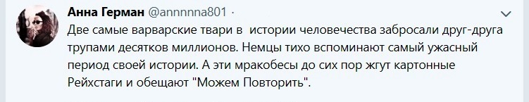 Удивляюсь, что эти, в общем-то прописные, истины необходимо кому-то разжевывать, тем более потомкам победителей в той страшной войне. У Иванов с памятью проблемы?