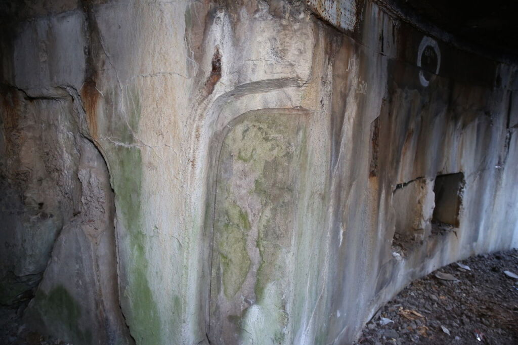 -В некоторых уцелевших помещениях (в том числе и, как ни странно, на внешних стенах башенной батареи) еще можно найти остатки «имперской» краски! А также довоенные автографы финских солдат.