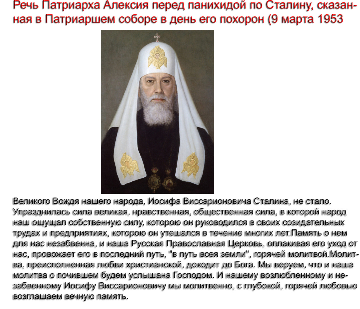 Сталин воровал богатства Российской Империи, уничтожал душу русского народа - Православие, уничтожал священников служивших Господу Богу Иисусу Христу и Святой Руси.