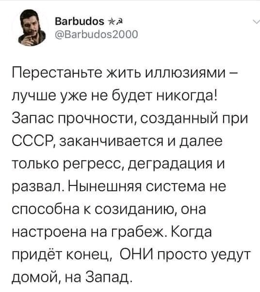 &t=2296sТо, что я думаю неважно, потому что многого не знаю, а верить или не верить-вопрос на сегодня риторический.. Хотелось бы услышать хоть один прогноз решения этой наитруднейшей задачи... Кроме того, что бы поделиться своим мнением, у меня, например, уже много вопросов.. Но одно кардинальное решение напрашивается: закрыть кремль, закрыть железный занавес и начать созидать сначала. .работы всем хватит.