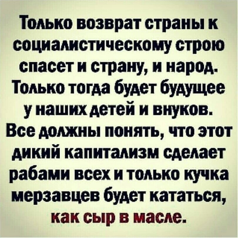 Галина, я вообще то сторонник СССР именно в Сталинском варианте. Сталин для меня уважаемый человек, не терплю, когда на него льют грязь. Но ради справедливости и правды, нужно заметить, что Советская система власти была богоборческой, поэтому и не устояла. Бога нужно любить, а не бороться с Ним, пото му, что Он нас возлюбил всех прежде, и жизнь отдал за нас.
