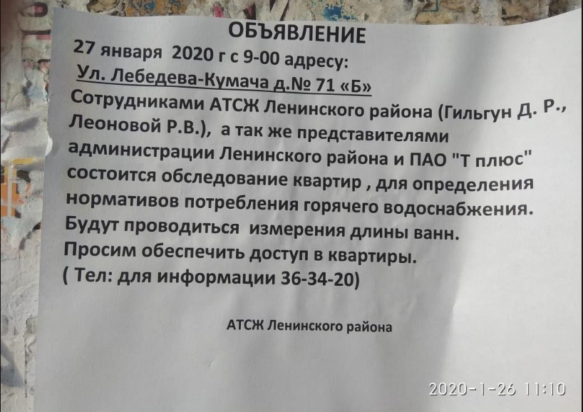 С другой стороны зашли районные чиновники Саратова, которые обнаружили возможное несоответствие длинны ванн у горожан, что может быть связано с заниженным нормативом потребления горячей воды у жителей, у которых не установлены приборы учёта. Например, для квартир с централизованным водоснабжением и ваннами длиной в 1500-1550 сантиметров установлен норматив в 3,13 куба горячей воды на человека в месяц, а владельцев ванн до 1700 сантиметров он уже исчисляется в 3,18 кубометра, а там, где жильцы обходятся только душем, норматив сокращается до 2,53 кубометра в месяц.
