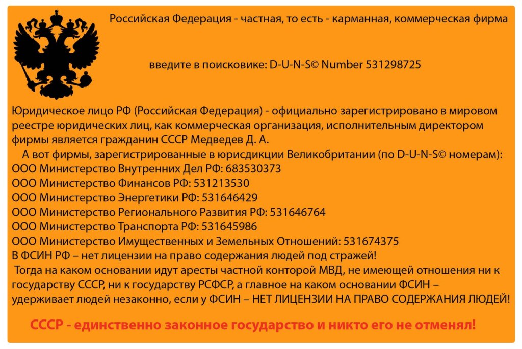 Обосновываю: У РФ нет Государственного банка и Государственной валюты. Международное законодательство имеет приоритет над внутренним. Российская Федерация (союз, объединение) даже по названию не является Государством. Вы сами, разберите значения слов, которые Вы читаете или слышите, и Вам станет понятно, без конспирологии. Google в помощь!