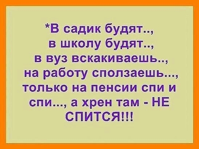 Бессоница на пенсии, пока не грозит (дожить бы). А,вот бессоница от перевозбуждённого состояния бывала. Причём усталый, как собака, а сна нет. Работал на кормоуборочном комбайне, что кукурузу на силос косит и сразу в машины грузит.8 минут и камаз с прицепом, более 20 тонн, набит. И так с рассвета и до заката. Ещё тех. обслуживание. Домой к 23 ч из дома в 6 ч.А сна нет, в голове продолжаешь работать, а знаешь, что скоро вставать! Аж до психа доходило.