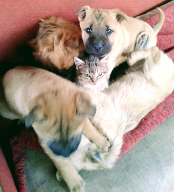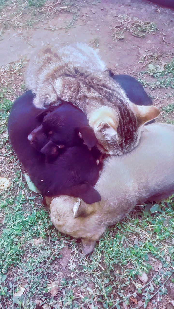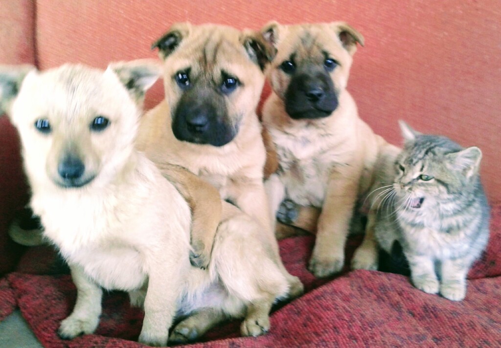 У меня кошки дружат с моими собаками. Перенимают у них повадки. Если идём к матери в гости, вся толпа следом. Чужим собакам, лучше на пути не попадаться! Кошки первые идут в атаку! Ещё удивило, недавно подбросили 2 х щенят, так все их приняли, как родных!