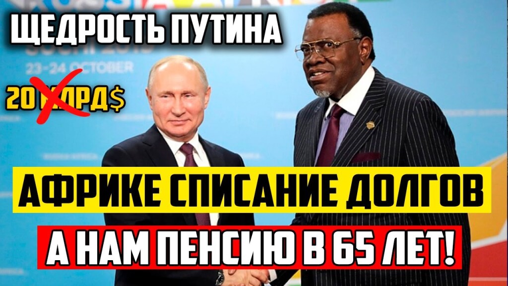 И когда президент Владимир Владимирович Путин со своего барского плеча прощает, не спрашивая россиян, африканским вождям долги в ДВАДЦАТЬ миллиардов долларов, то таким образом он одним махом вынимает из кармана каждого российского избирателя около 13 тысяч рублей, что больше МРОТ и больше пенсии многих россиян. Ну, или почти 30% от средней зарплаты по РФ. Именно такова цена удовлетворения его геополитических фантазий и амбиций.