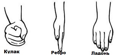 III. Упражнения на психомоторику. Суть упражнений: последовательное движение руками и произношение речевки. Например, кулак-ребро-ладонь. Задача ребенка озвучивать свое действие и стараться ускорять его.