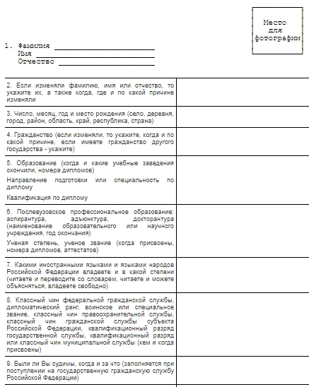 Разъяснён порядок заполнения анкеты при приёме на государственную службу