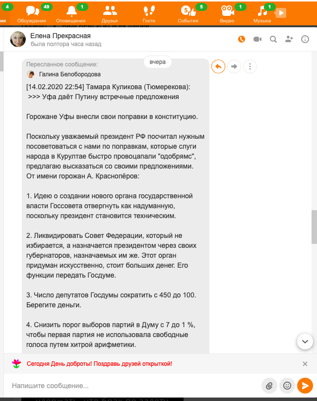 Ответное обращение жителей Уфы по вопросу поправок к Конституции РФ. Спецпредложения от народа.