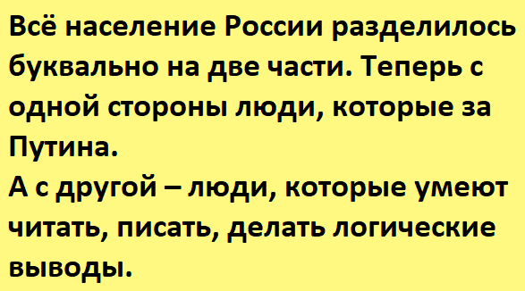 Среди путинолюбивых большинство, не непонимающих того, что творится, а допущенных к заветному корыту-брюхо им на мозги давит и управляет языком.