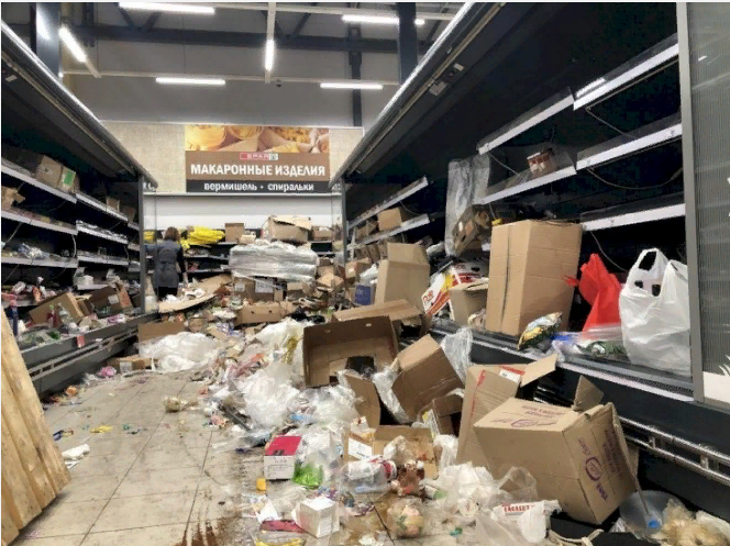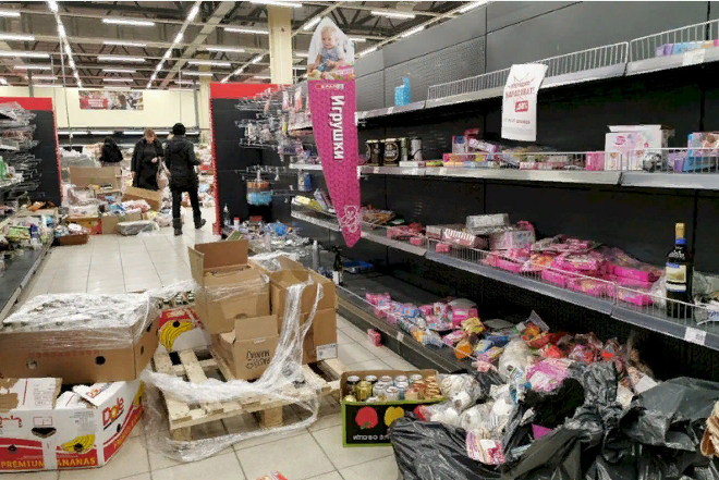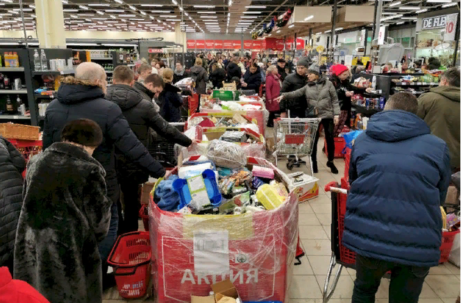 "В России начали закрываться сети крупных супермаркетов — такие как "Ашан", "Лента", "Карусель", Магнит" и другие. Российские новостные сайты пытаются замазать проблему советским новоязом — называя закрытие магазинов словом "переформатирование", но в реальности причина совсем в другом — у людей банально нет денег на гипермаркеты, и гипермаркеты попросту не выживают на рынке. Остаются маленькие гастрономы а-ля СССР"
