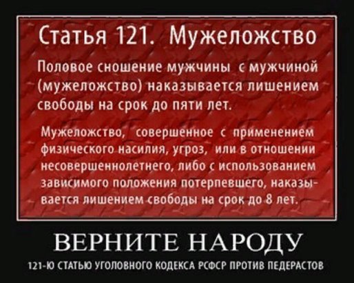 Верните народу статью 121 УК РСФСР от 27 октября 1960 года!