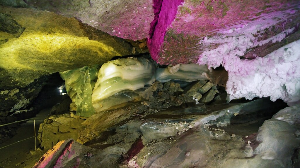 Великан. Самый большой грот туристического маршрута (грот Географов самый большой в Кунгурской ледяной пещере). Внутри круглый год стоит украшенная елка.