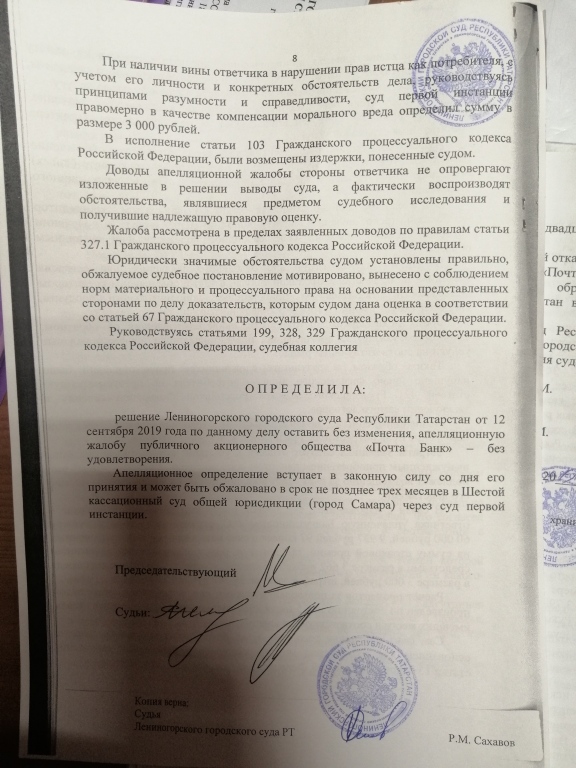 Банк обратился в Верховный суд Республики Татарстан. Однако, суд апелляционной инстанции оставил в силе решения суда первой инстанции.