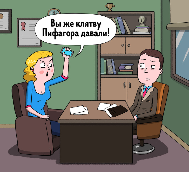Смысл картинки я поняла, благодарю, что просветили насчет клятвы Пифагора. Теорему его слышала, а клятву - нет.