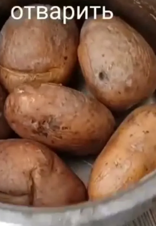 Прежде всего я беру несколько картофелин и отвариваю их "в мундире", т.е. не очищаю совсем, просто помыл, залил водой и поставил кастрюлю на газ.