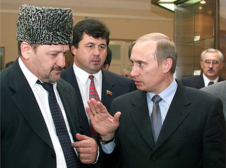 Владимир Путин с главой администрации Чечни Ахматом Кадыровым. Фотография пресс-службы президента России, Ростов-на-Дону, 8 ноября 2000 г.
