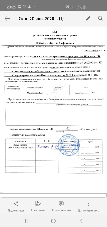 П.с.: участок у соседа без межжевания, постройки не зарегистрированы, председатель умер и не может подтвердить, что он видел как строят.
