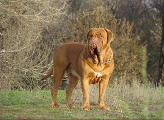 Все мастифы обладают крупными, вернее, гигантскими размерами. У этих собак огромная голова с массивной нижней челюстью, которую они используют по назначению при необходимости. Отличительная особенность мастифов от остальных пород – обвисшая кожа на морде. Размер собаки в среднем достигает 75 сантиметров, а вес составляет 70 килограммов. Но встречаются и более крупные особи, которые достигают в весе более 100 килограммов.