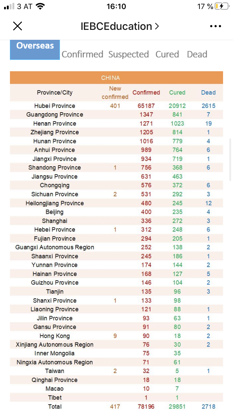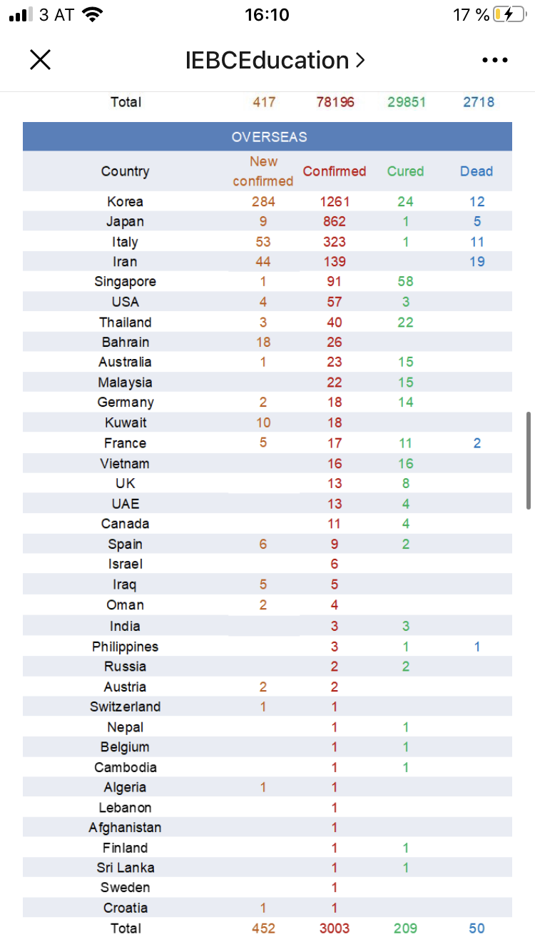 В Китае на данный момент эпидемия идёт на спад. Зато в Италии и в Корее началась паника. Огромное количество заболевших за сутки, количество смертей увеличивается.