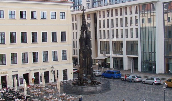 Фонтан в готическом стиле был возведен в средине 19 века на Почтовой площади - как благодарность Всевышнему за спасение города от страшной эпидемии холеры (1840-41), которая обошла стороной Дрезден.