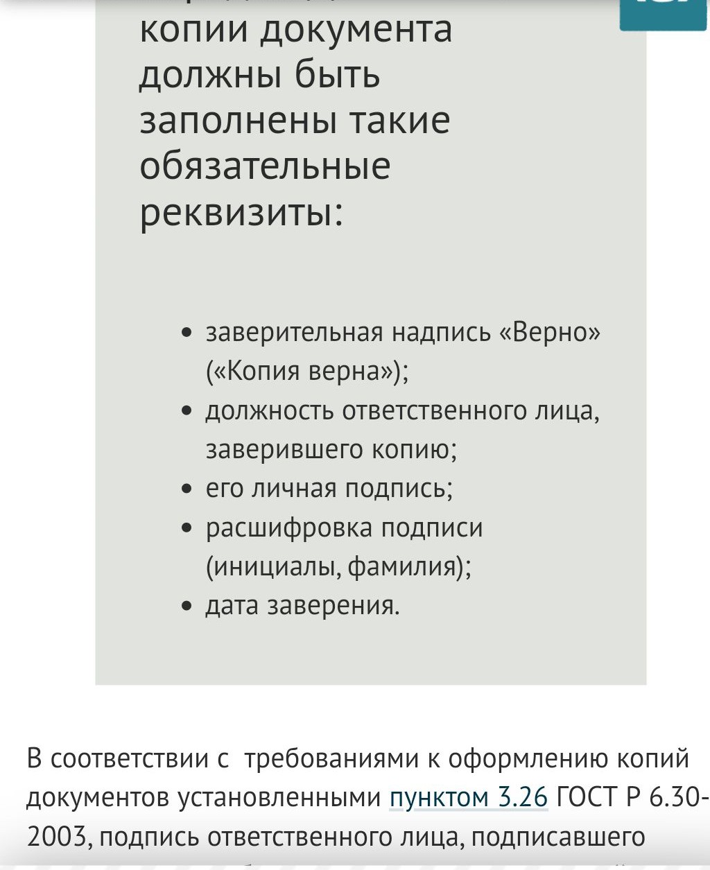 Копия документа заверяется печатью и подписью руководителя организации, либо нотариусом.