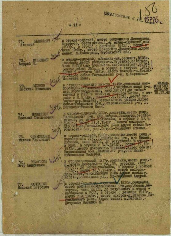 Только что видел в заставке на России 24 фамилию и инициалы своего деда, а возможно и не его, т.к. дед был сержант, а публикуются сегодня списки красноармейцев без указания звания.